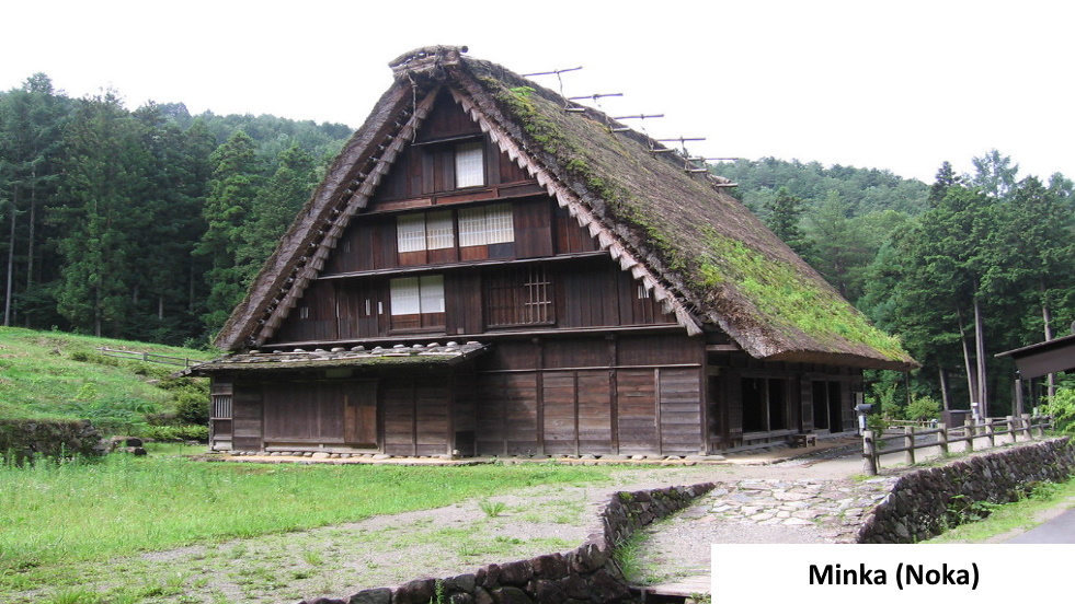 Minka sau „casa poporului” sunt case tradiționale construite folosind oricare dintre stilurile de construcție tradiționale japoneze. Societatea japoneză era împărțită în patru grupuri: fermieri, artizani, comercianți și clasa samurailor. Locuințele minka au fost inițial pentru castele non-samurai sau samurai de nivel scăzut. Casele tipice minka se caracterizează prin structura și forma de bază a acoperișului. Acestea vin într-o mare varietate de dimensiuni și stiluri, în funcție de locația locuitorului și de condițiile climatice ale zonei. Casele Minka sunt, în general, clasificate ca:
